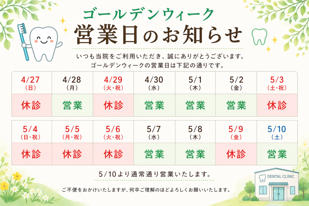 ゴールデンウイーク営業日のお知らせ